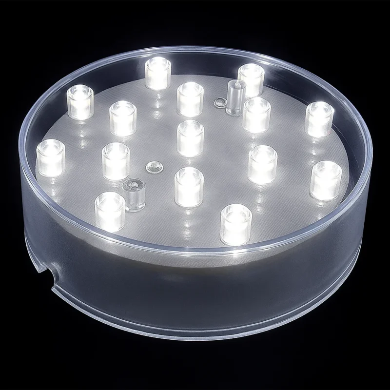 Enhance your centrepieces with our Vase Base Uplighter – a sleek, powerful light that adds a dramatic glow from below, turning any vase or display into a showstopper!”